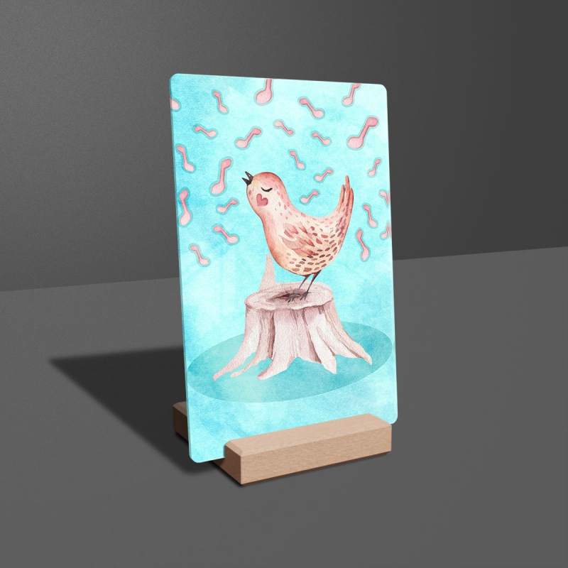 Na produktovém fotu vyobrazena nejoblíbenější varianta akrylového skla 14x21/21x14cm a dřevěný stojánek 10x10cm.