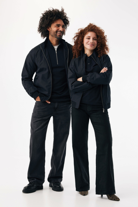 Unisex městská bunda vyrobená ze 100% recyklovaného polyesteru s RTPU membránou (certifikace GRS). Navržena v ležérním, ale stylovém casual chic duchu. Přední zip z nikluprostého kovu je opatřen prémiovým kovovým jezdcem a dekorativní šňůrkou po celé délce. Na bocích jsou dvě lištové kapsy se skrytým zapínáním na patentky, límec z hlavního materiálu a rukávy i spodní lem zakončené měkkým žebrovaným lemem pro větší pohodlí. Bunda je podšitá a má skrytý zip ve spodním lemu a na levé hrudi pro snadné doplnění potisku nebo výšivky. Celý oděv je sešit nití z recyklovaného polyesteru. Na zadní straně u krku je odtrhávací velikostní štítek a visačka iqoniq craft, etiketa s pokyny k údržbě je umístěna v levém vnitřním bočním švu. Použití skutečně recyklovaných materiálů a pravdivost environmentálních tvrzení jsou zaručeny technologií AWARE™, která využívá fyzický trasér a blockchain pro ověření původu. Po naskenování QR kódu získáte přístup k digitálnímu pasu výrobku.