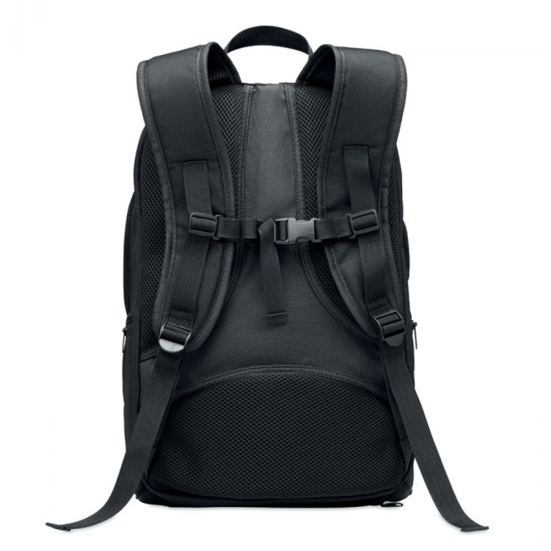 Multifunkční sportovní batoh z 600D RPET s několika přihrádkami (včetně polstrované přihrádky na raketu). Nastavitelný ramenní popruh.