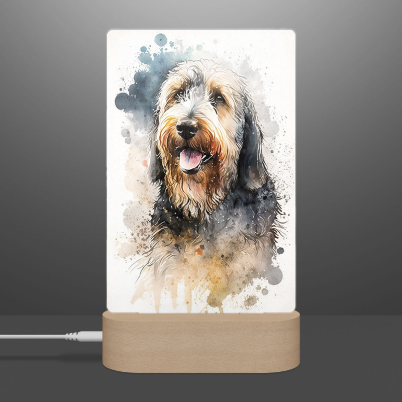 Součástí balení je akrylové sklo dle výběru, dřevěný RGB LED stojánek a napájecí USB kabel.