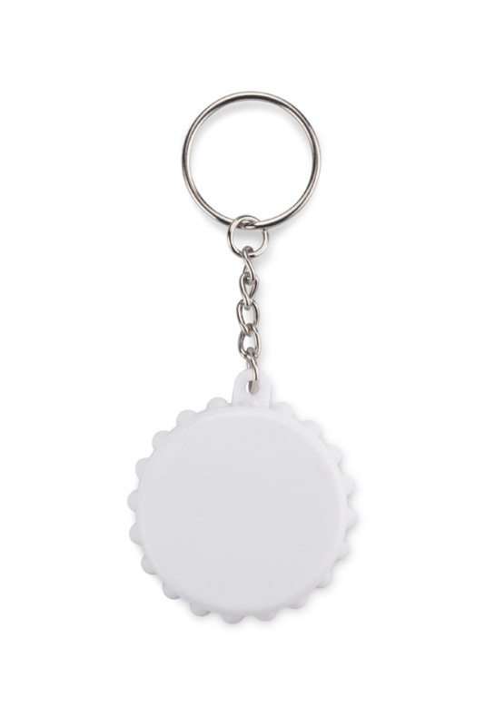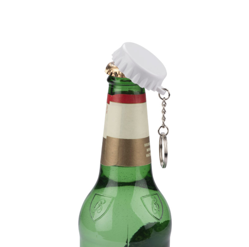 Klíčenka KAPSI ve tvaru uzávěru láhve. Klíčenka sloužící jako otvírák je praktickým a stylovým doplňkem, který vám umožní snadno otevřít lahve kdekoli.