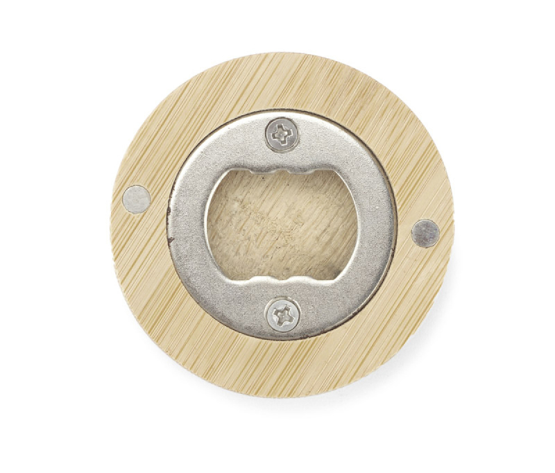 Praktický otvírák na láhev vyrobený z ekologického materiálu - bambusu. Magnety na spodní straně umožňují připevnění k kovovým částem, jako jsou dveře chladničky, díky nimž je otvírák snadno přístupný, kdykoli jej potřebujete. Část používaná k otevírání lahví je vyrobena z odolné nerezové oceli.