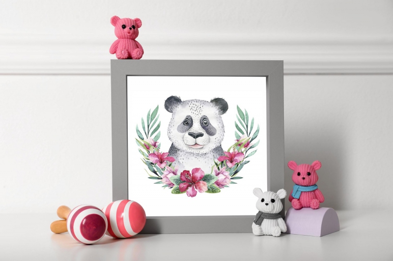 Panda v květinách dětský Plakát
