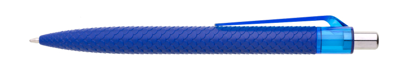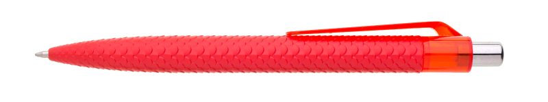 Plastová propiska PANGO se šupinami připomínajícími luskouna má plnobarevné červené tělo, průhledný klip v barvě propisky a pochromované cvakátko. Náplň velkoobsahová, modře píšící.