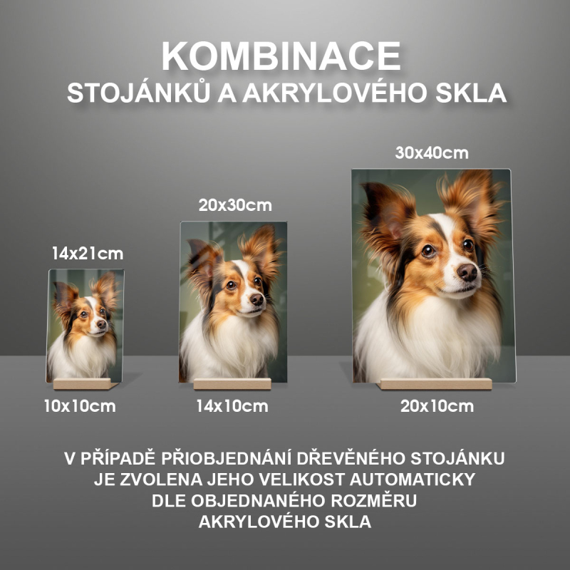 V případě přiobjednání dřevěného stojánku je zvolena jeho velikost automaticky dle objednaného rozměru akrylového skla viz produktové foto.