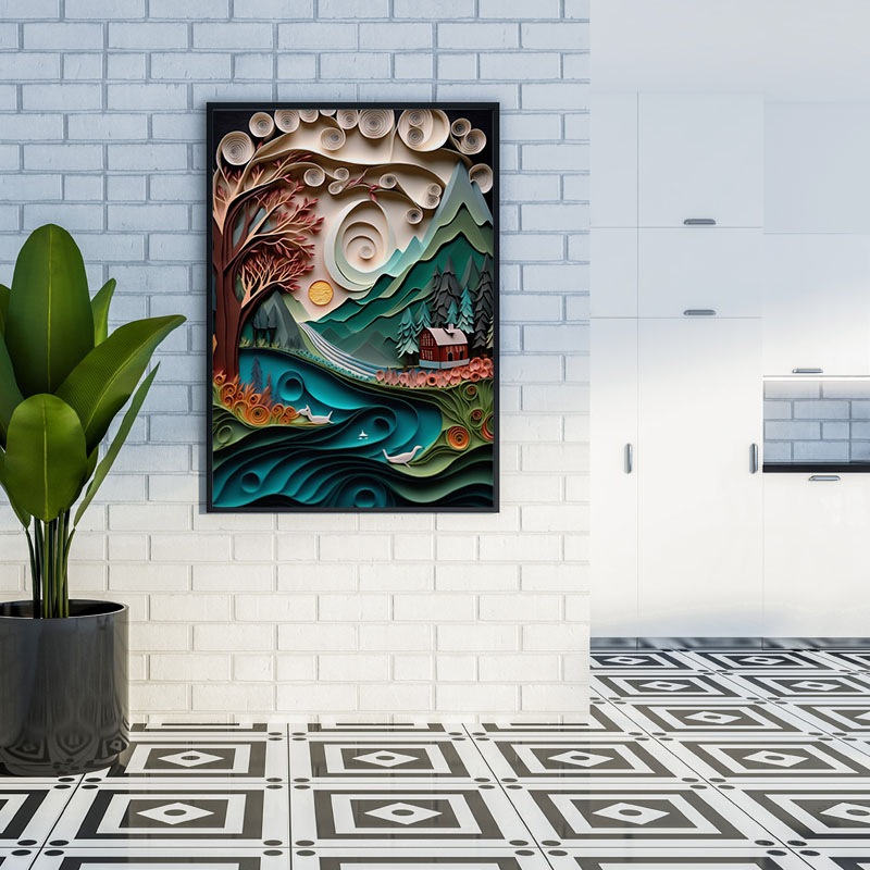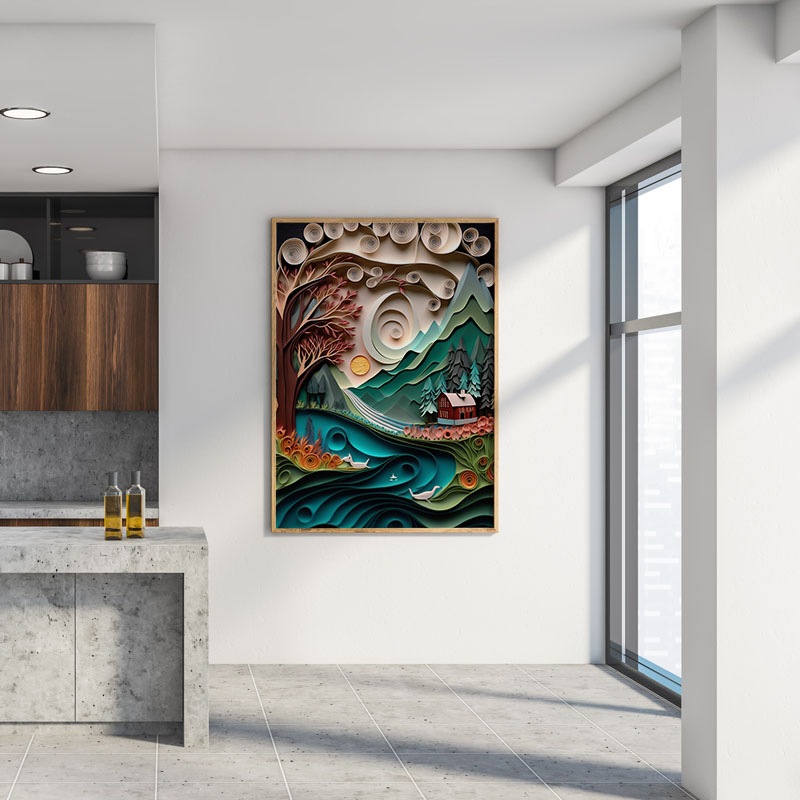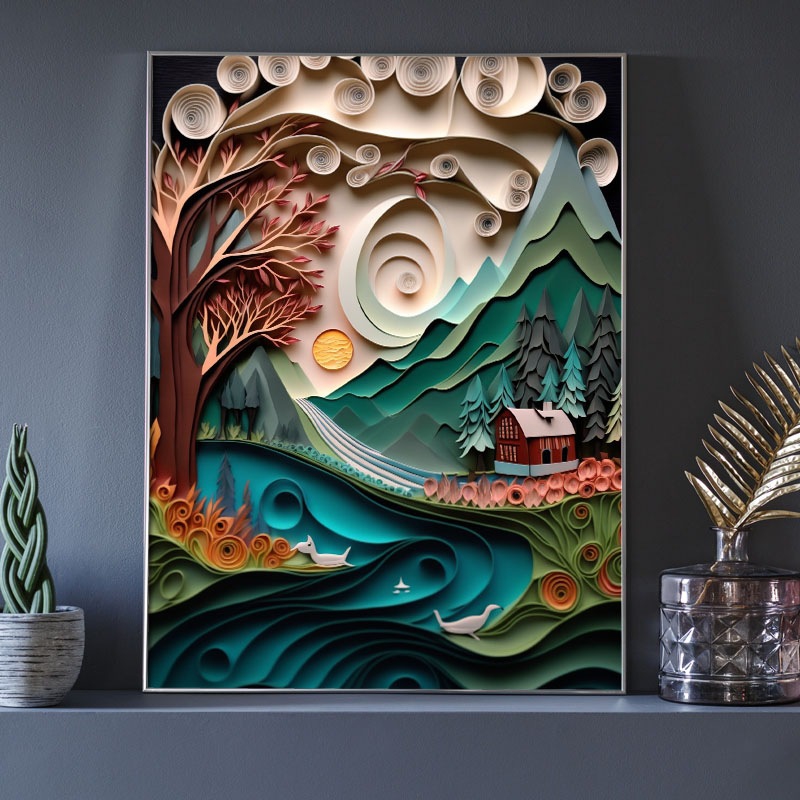 Papírová krajina - dům pod horou