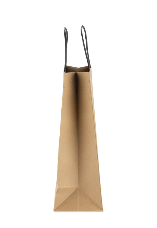 Velkoformátová papírová taška PAKLO je elegantní a pevná taška vyrobená z 200 g kraftového papíru. Je opatřena černými kroucenými papírovými uchy, která dobře padnou do ruky a dodávají celé tašce elegantní kontrast. Její velký formát umožňuje balení větších výrobků, katalogů nebo dárkových sad. Díky jednoduchému přírodnímu designu je ideální pro obchodní a propagační použití. Taška je k dispozici s logem značky.