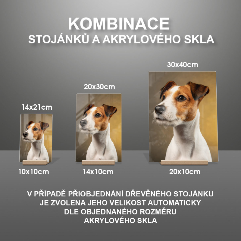 V případě přiobjednání dřevěného stojánku je zvolena jeho velikost automaticky dle objednaného rozměru akrylového skla viz produktové foto.