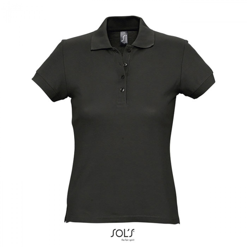 SOL’S PASSION Women, dámské piqué polo. Široká škála barev. Vypasovaný střih, žebrovaný pletený límec, zesílená knoflíková léga se 4 knoflíky tón v tónu, krční lemovka, rovný pas s bočními rozparky. Materiál: 170g/m², 100% česaná prstencová bavlna, OEKO-TEX.