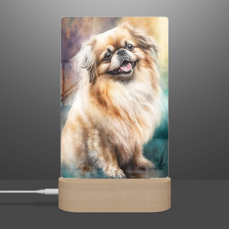 Součástí balení je akrylové sklo dle výběru, dřevěný RGB LED stojánek a napájecí USB kabel.