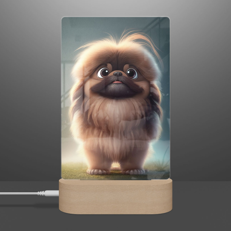 Součástí balení je akrylové sklo dle výběru, dřevěný RGB LED stojánek a napájecí USB kabel.
