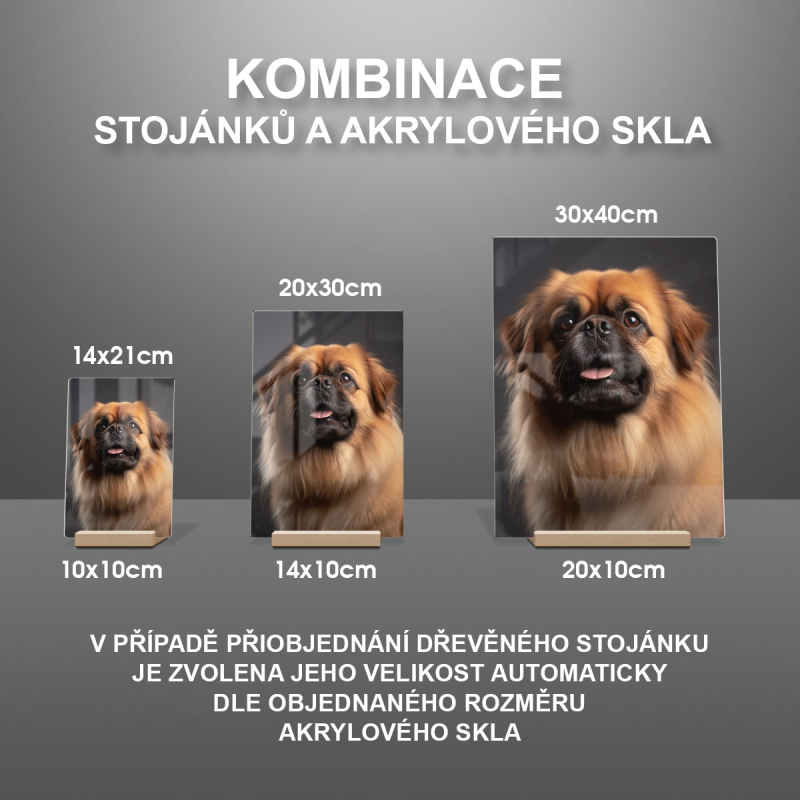 V případě přiobjednání dřevěného stojánku je zvolena jeho velikost automaticky dle objednaného rozměru akrylového skla viz produktové foto.