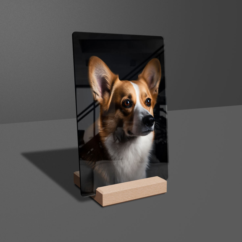Dárková deska s digitální grafikou psa z akrylového skla.