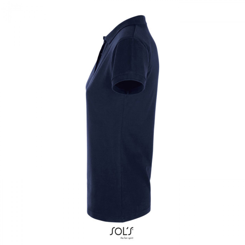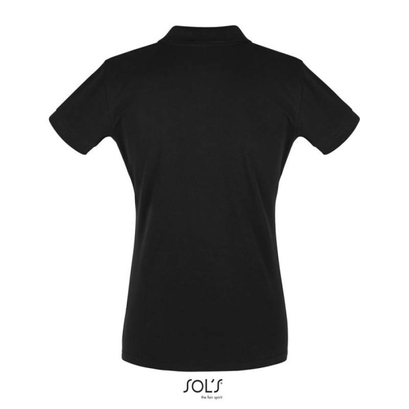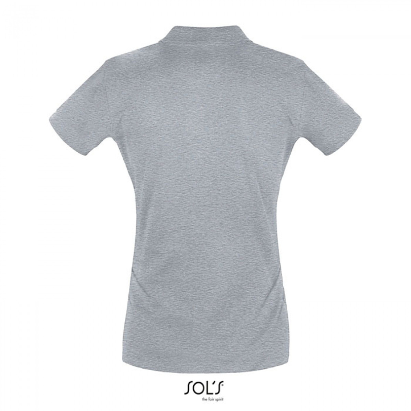 SOL’S PERFECT Women, dámské piqué polo. Vypasovaný delší střih. Žebrovaný límec a léga se 2 knoflíky, pletené manžety na rukávech, 1 náhradní knoflík. Materiál: 180g/m², 100% česaná prstencová bavlna, OEKO-TEX.