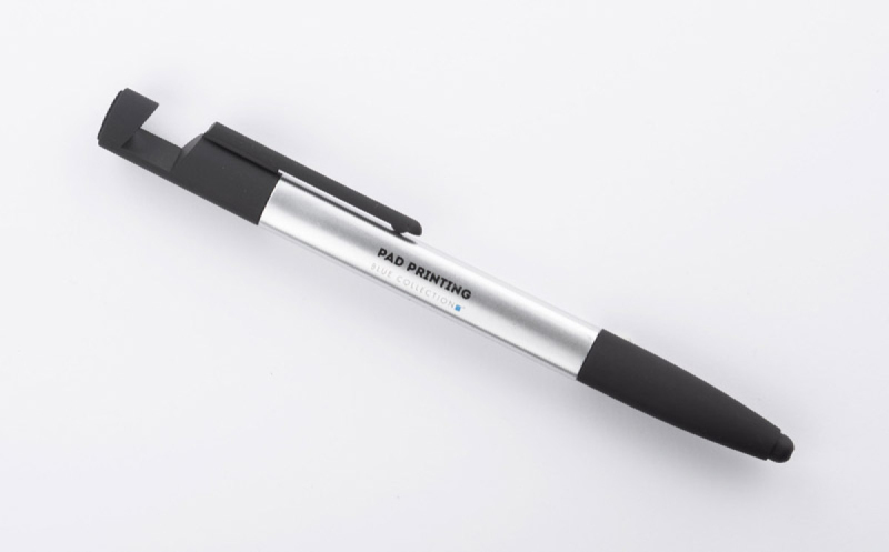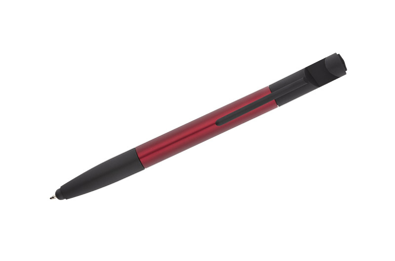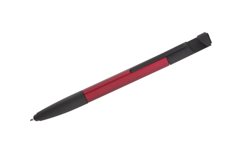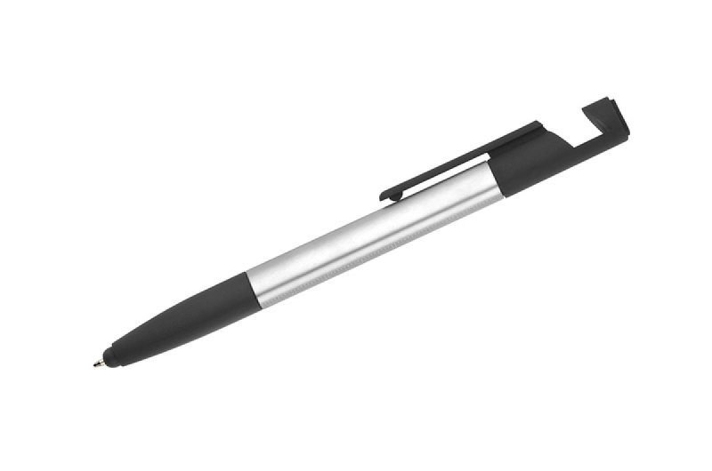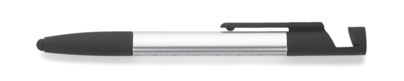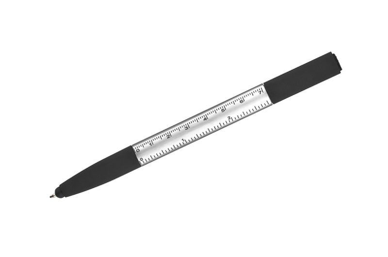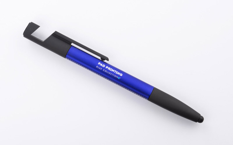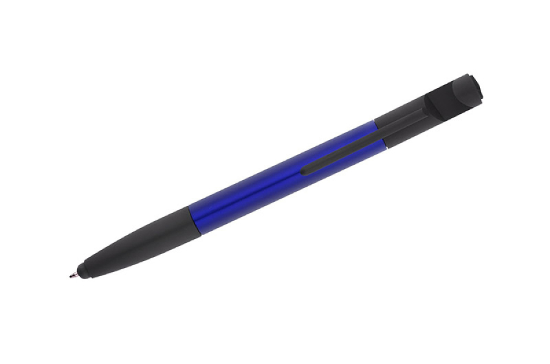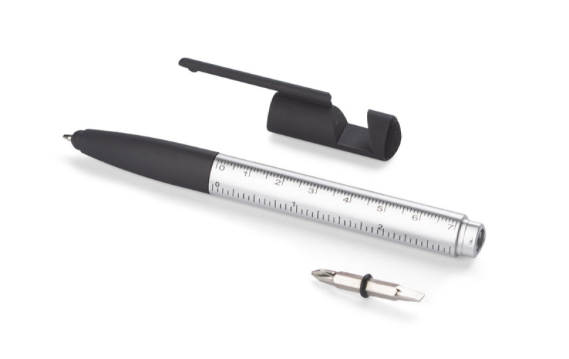 Praktická sada SET, kompaktních rozměrů, který v sobě zahrnuje až 8 funkcí: propiska, hrot na dotekové obrazovky, čisticí utěrka na obrazovky, stojánek na telefon, 2 šroubováky, 2 pravítka (palcové a centimetrové). Vyrobená z umělé hmoty. Spouštěcí mechanismus typu twist. Náplň typu X20 v modré barvě.