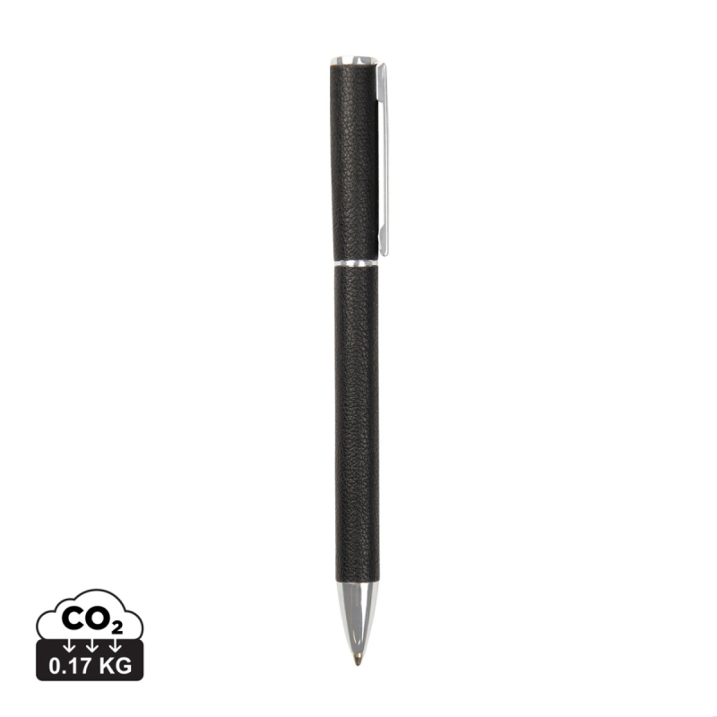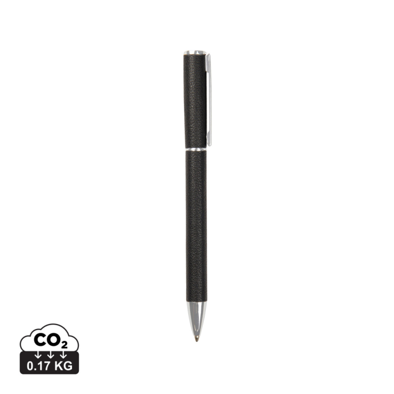 Elegantní pero s modrým inkoustem, které přináší délku psaní až 1200 metrů a šířku psaní 1,0 mm. Vyrobeno z recyklovaného hliníku, mosazných komponentů a PU materiálu. Řada Timo nabízí minimalistické kancelářské doplňky vyrobené z recyklovaných materiálů s certifikací RCS. RCS certifikace zajišťuje garanci použití recyklovaného materiálu díky transparentnímu přehledu nad dodavatelským řetězcem. Tento produkt obsahuje 27 % recyklovaného hliníku s certifikací RCS.