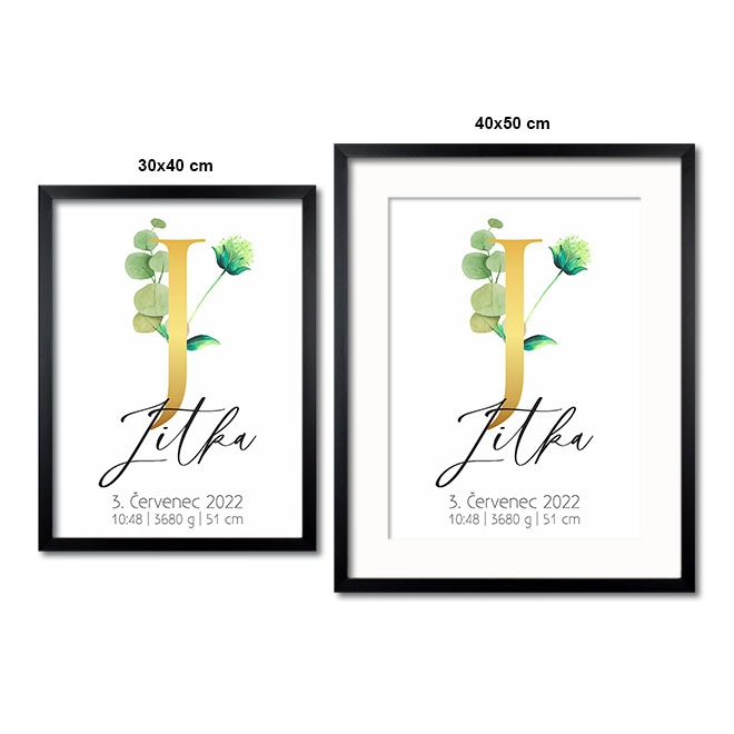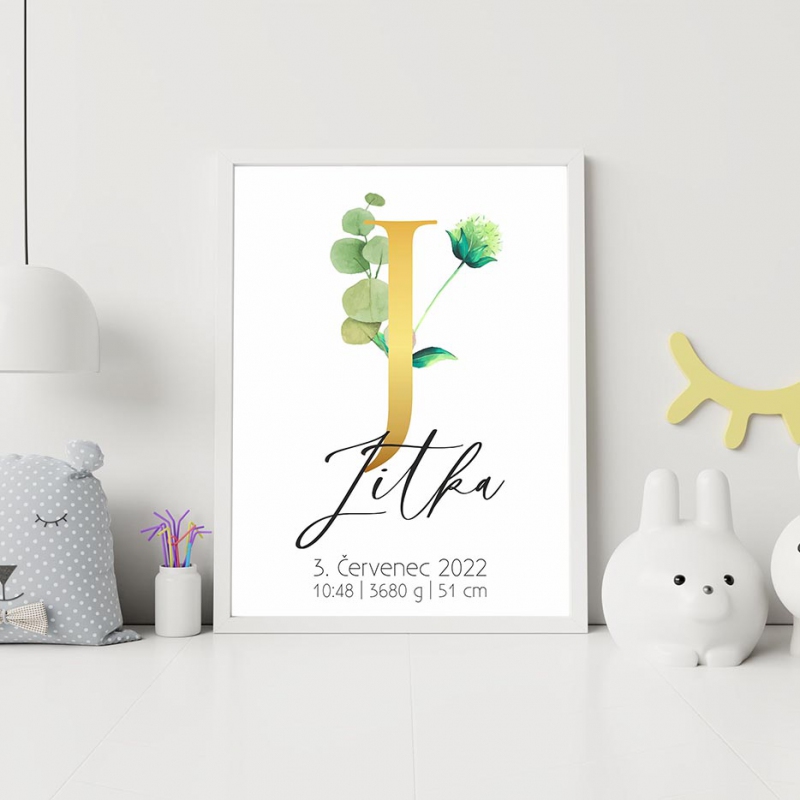 Personalizovatelný plakát Narození miminka - Abeceda "J"