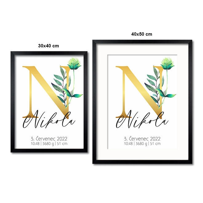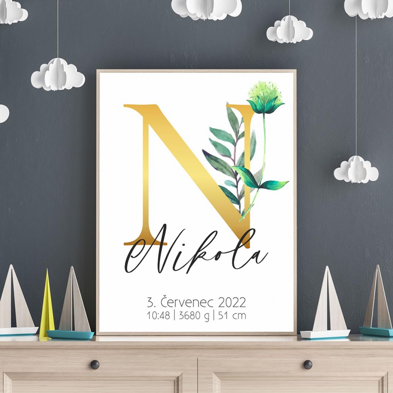 Personalizovatelný plakát Narození miminka - Abeceda "N"
