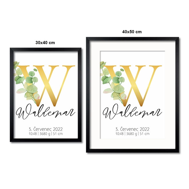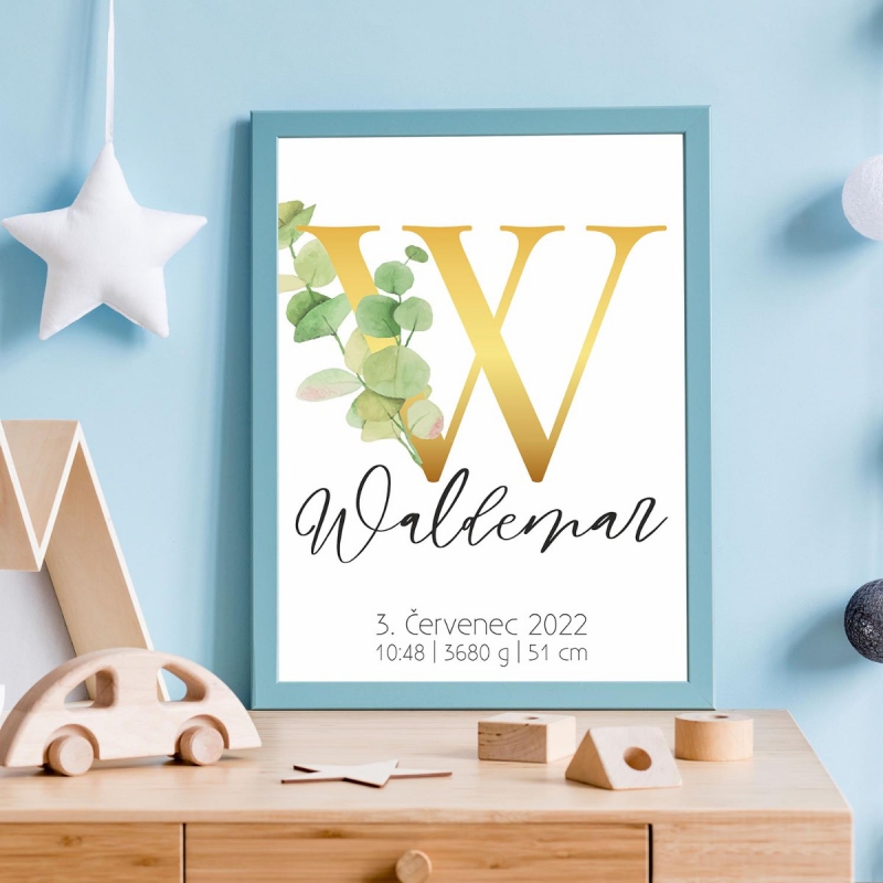 Personalizovatelný plakát Narození miminka - Abeceda "W"