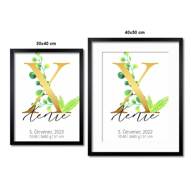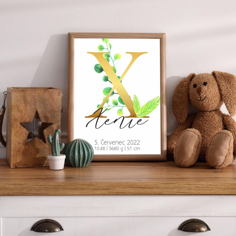 Personalizovatelný plakát Narození miminka - Abeceda "X"