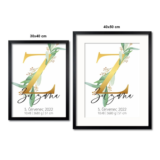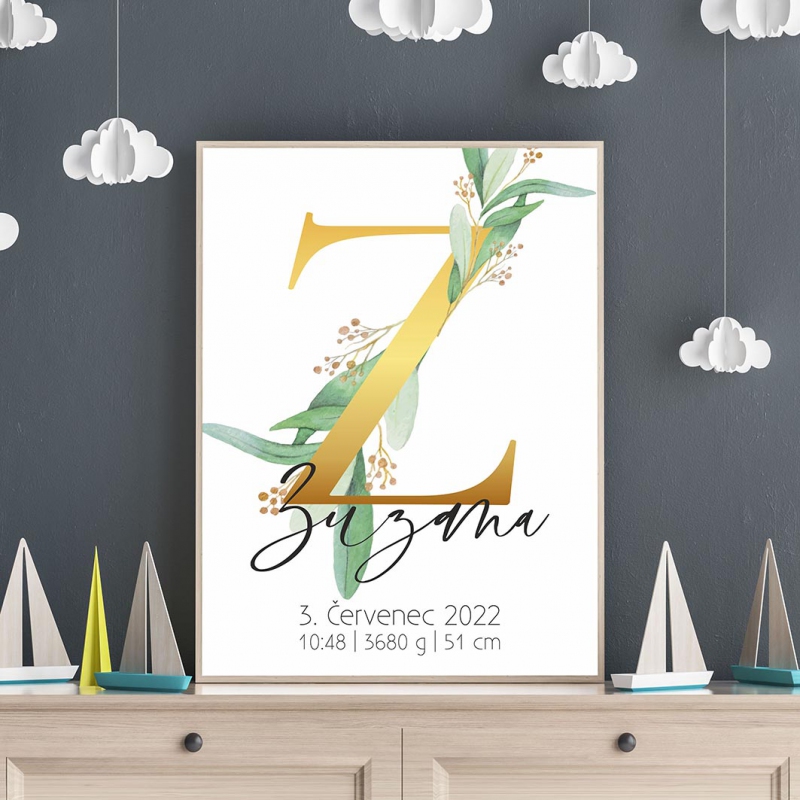 Personalizovatelný plakát Narození miminka - Abeceda "Z"