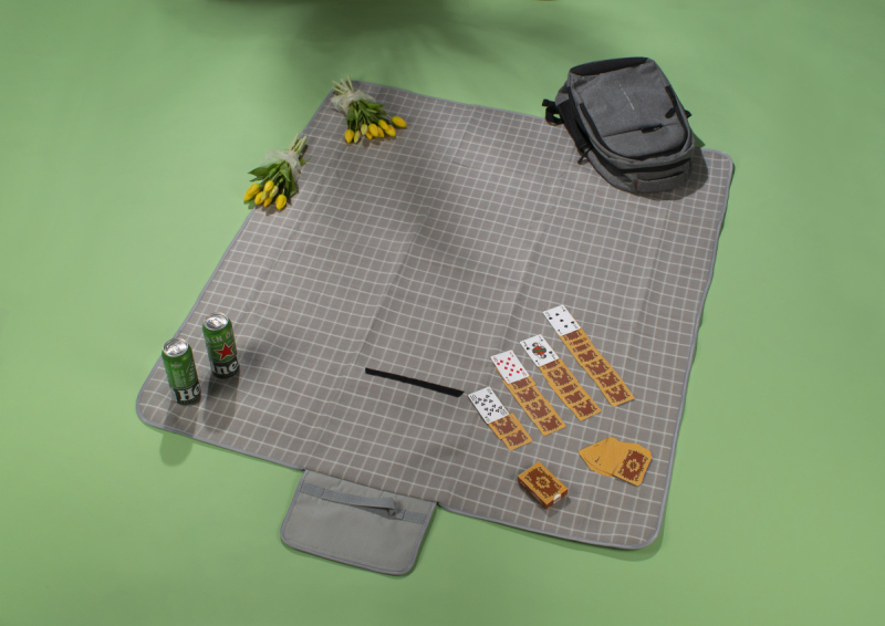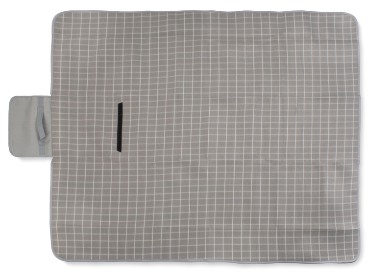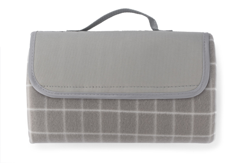 Piknikový koš vyroben z hladké fleece s klasickými čtverečky. Zespodu má vodovzdornou vrstvu PET. Po sklopení se poklop se zapínáním na suchý zip.