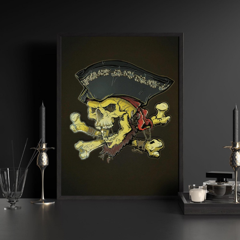 Pirátska lebka 3D Zlatý Plakát