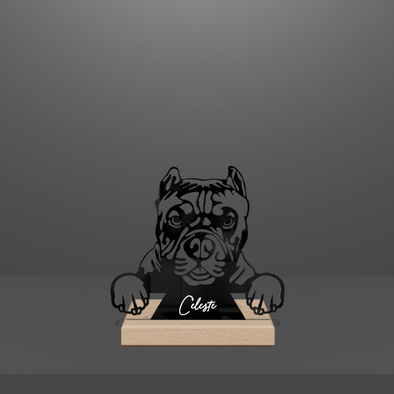 Tato interiérová dekorace je ideální pro všechny milovníky zvířat a každého, kdo má doma svého čtyřnohého miláčka. Vyberte plemeno svého pejska, vyplňte jeho jméno a udělejte si radost krásnou dekorací v podobě Vašeho pejska. Motiv je vyroben z akrylového materiálu, který je velmi odolný. Tuto dekoraci lze použít pro různé interiéry, jako obývací pokoje, kanceláře nebo i dětské pokoje. Zároveň se jedná o originální dárek pro všechny, kteří sdílí své srdce se svým čtyřnohým miláčkem.