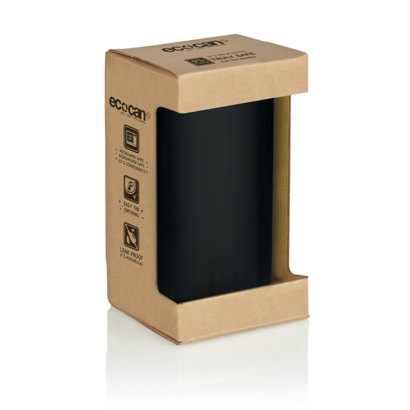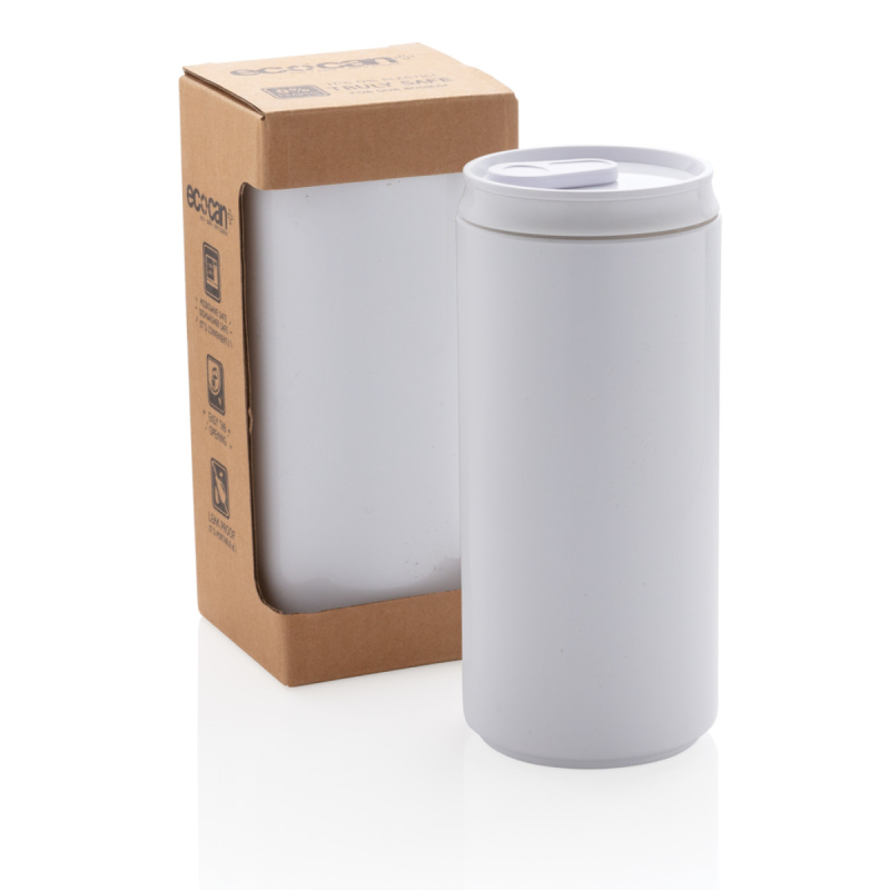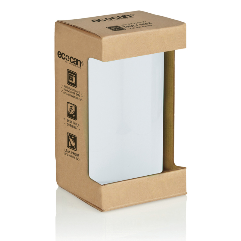 Nádoba na pití ve stylu plechovky vyrobená 100 % z přírodního materiálu PLA. Vhodná do mikrovlnné trouby i myčky nádobí. Baleno v eko krabičce. Objem: 330 ml.