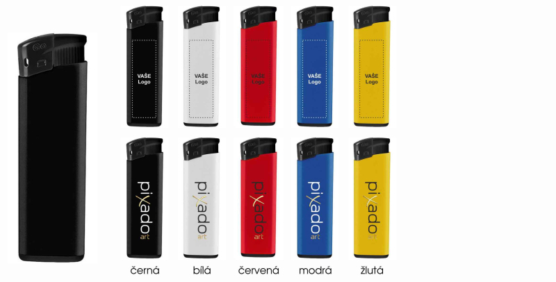 Plastový plynový zapalovač s pevným plamenem (bez regulace plamenu) s možností opakovaného plnění.