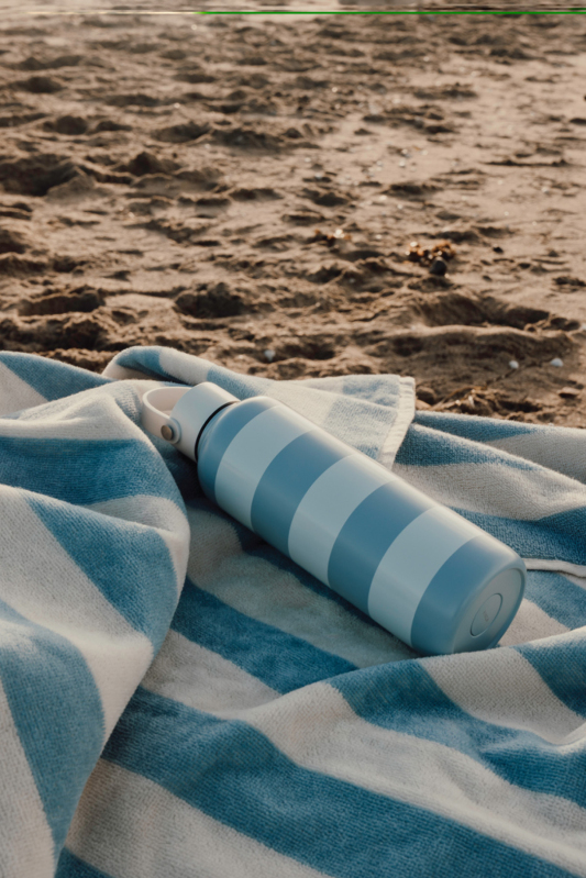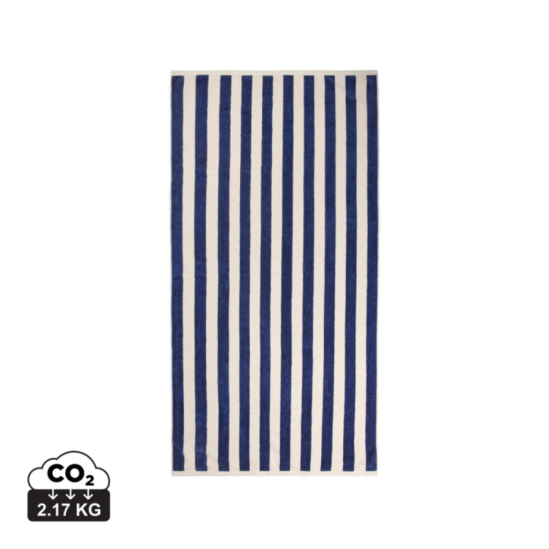 Tato plážová osuška je ideálním společníkem pro slunečné dny na pláži, na lodi nebo u bazénu. Je tkaná v klasickém dvoubarevném pruhovaném vzoru a vyrobena z recyklované bavlny s certifikací GRS, díky čemuž je mimořádně příjemná na dotek a poskytuje dlouhodobý komfort. Díky vysoké gramáži 450 g/m² kombinuje osuška skvělou savost s prémiovou kvalitou. Rozměr 80 × 160 cm. Vyrobeno zodpovědně v Portugalsku. Produkt je certifikovaný podle Global Recycled Standard (GRS), což zaručuje, že celý dodavatelský řetězec recyklovaných materiálů splňuje přísné požadavky. Tento výrobek obsahuje 50 % recyklované bavlny s certifikací GRS.