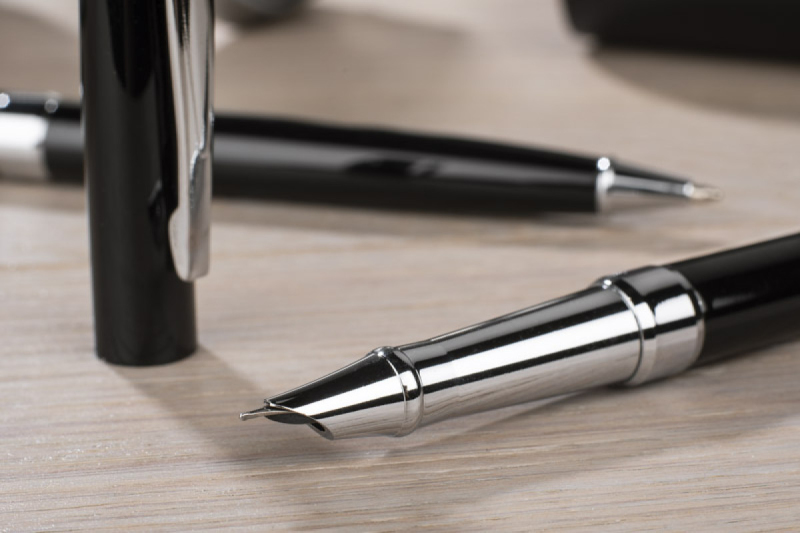 Nevada je klasická elegantní pero vyrobené z kovu. Hřídel je pokrytá barvou. Finiše jsou chromované. Pero je nádherně skryté uvnitř. Pero je vybaveno konvertorem. Možnost vytvořit psací sadu se stejným vzorem.