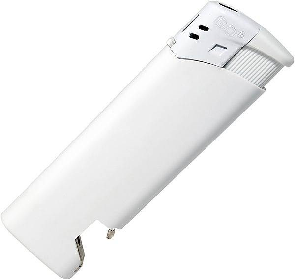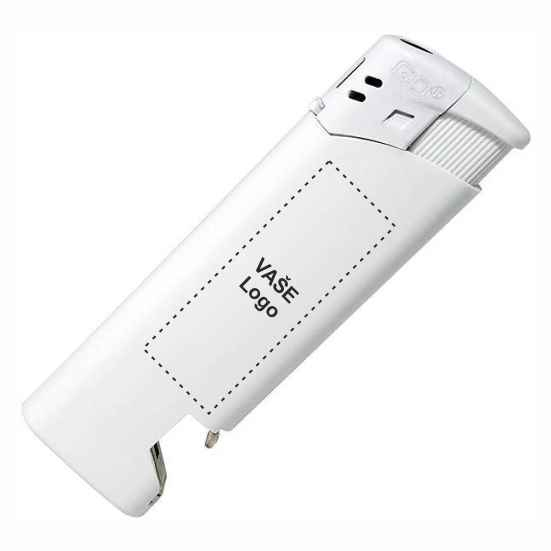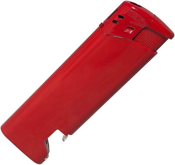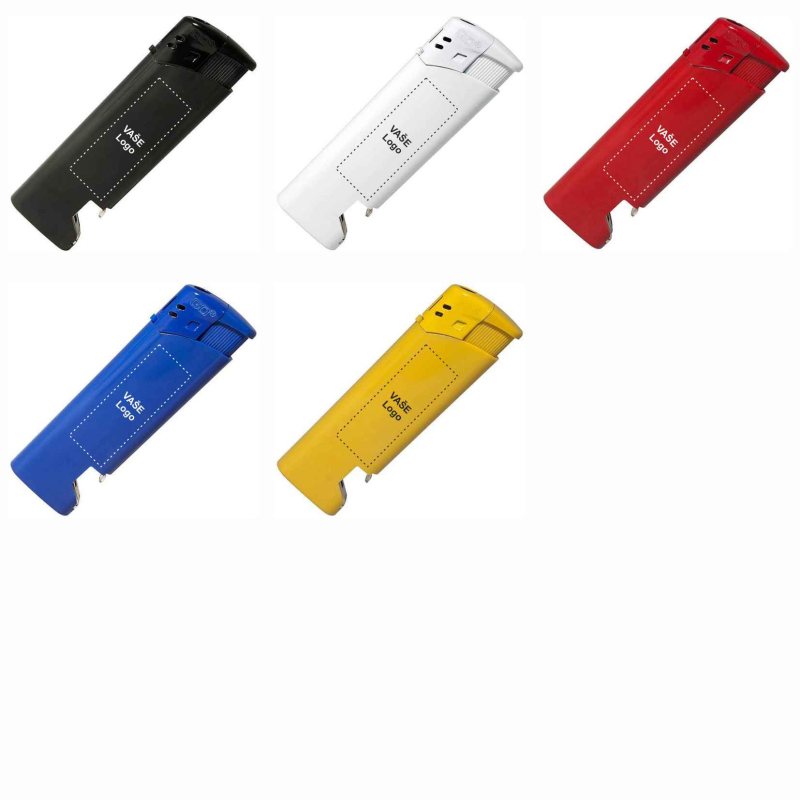 Plastový plnitelný piezo zapalovač je kombinován s otvírákem lahví. Podle předpisů EU je vybaven dětskou pojistkou.Plnitelné zapalovače jsou kvůli splnění bezpečnostních požadavků na jejich přepravu a skladování dodávány pouze s minimálním množstvím plynu či bez plynové náplně.