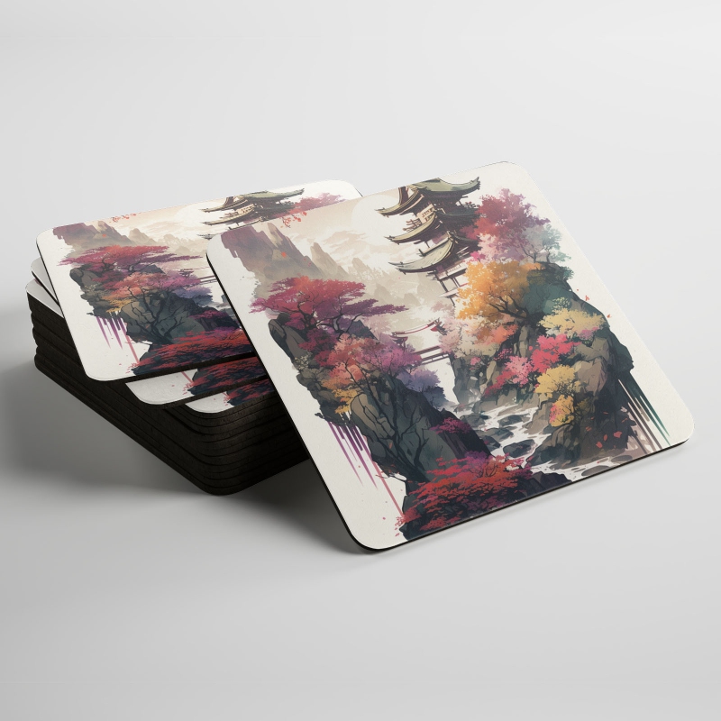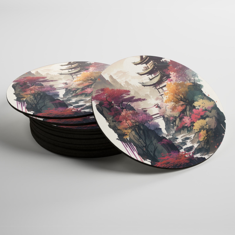 Podtácky Japonský chrám se sakurami
