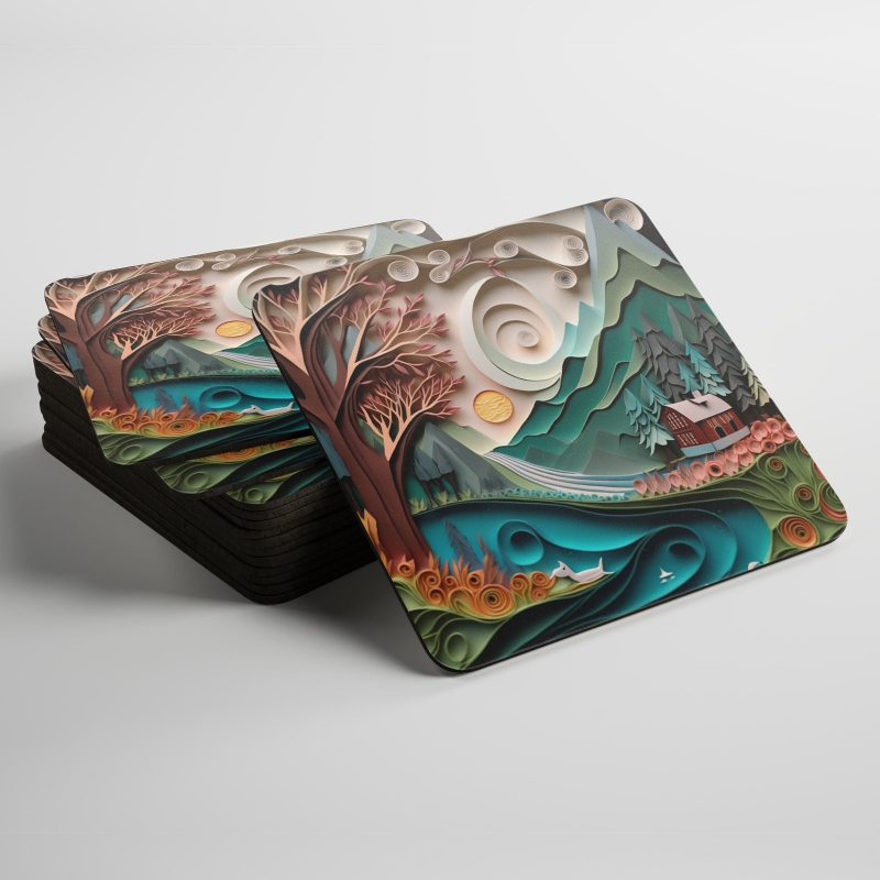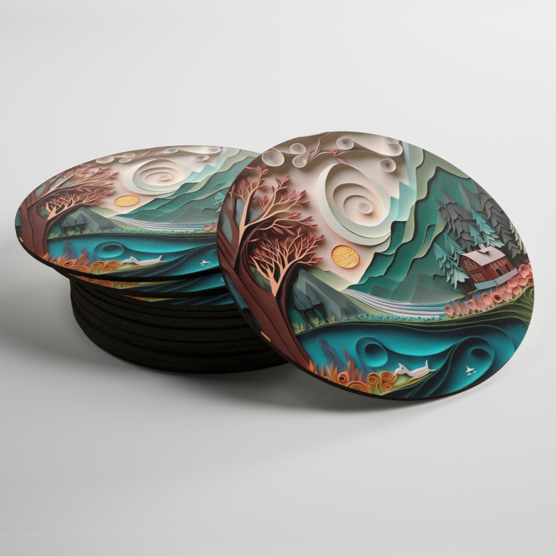 Podtácky Papírová krajina - dům pod horou