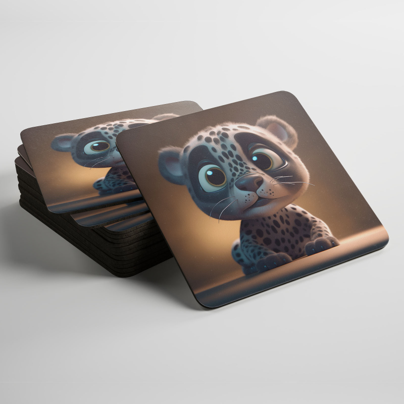 Podtácky Roztomilý animovaný sněžný leopard