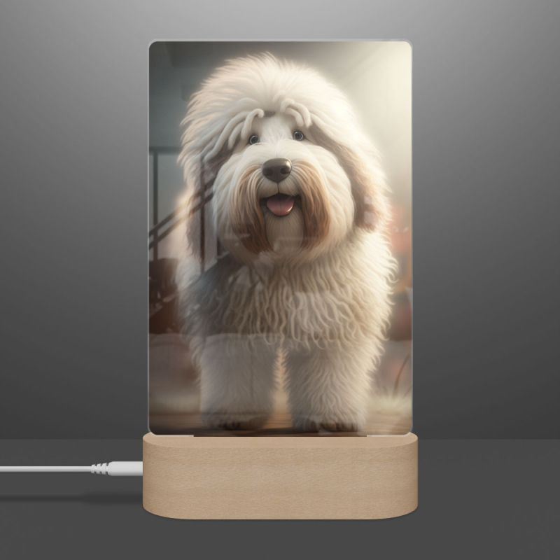 Součástí balení je akrylové sklo dle výběru, dřevěný RGB LED stojánek a napájecí USB kabel.