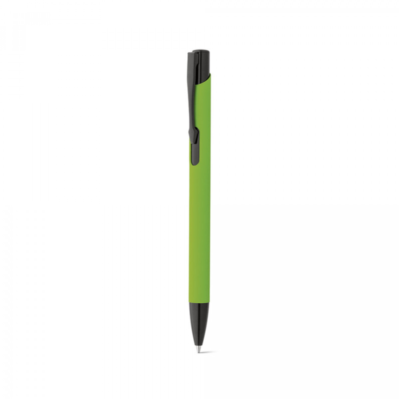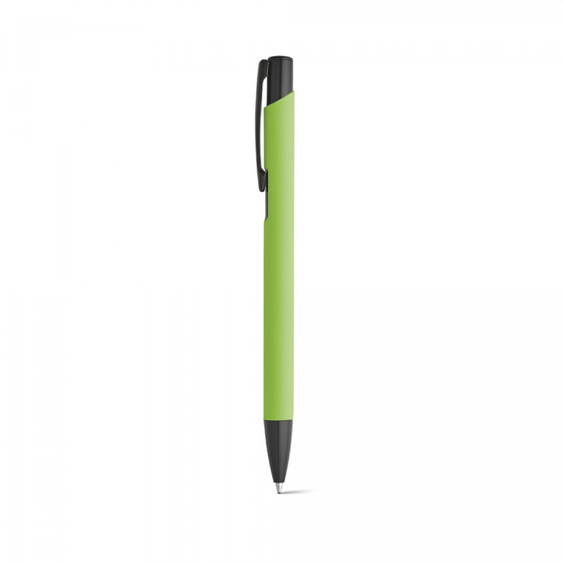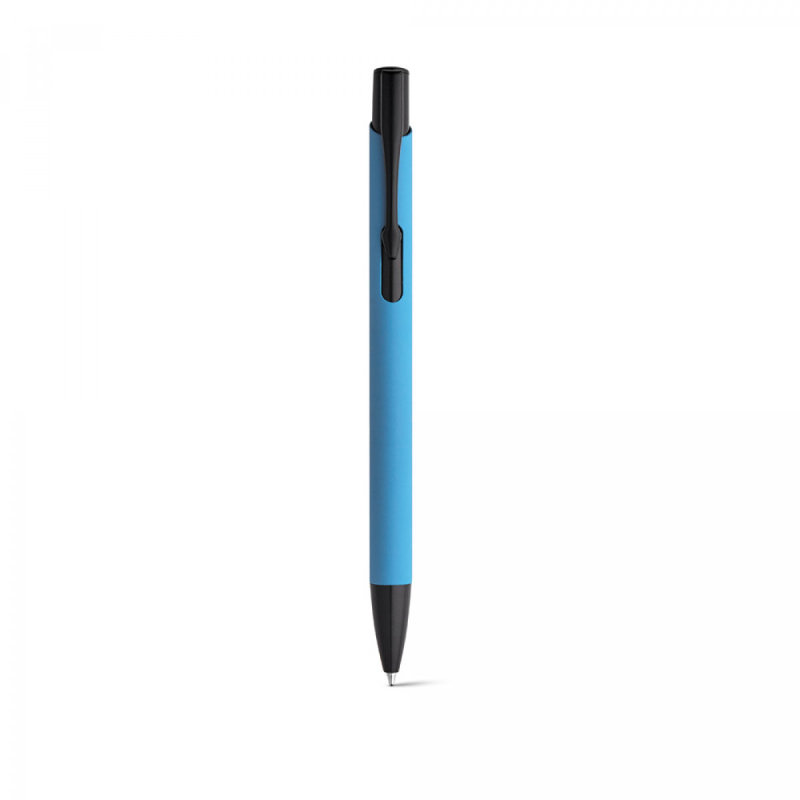 Hliníkové kuličkové pero s barevným tělem a pogumovaným povrchem. ø10 x 137 mm