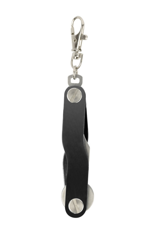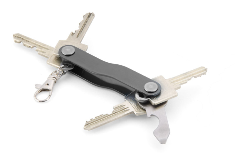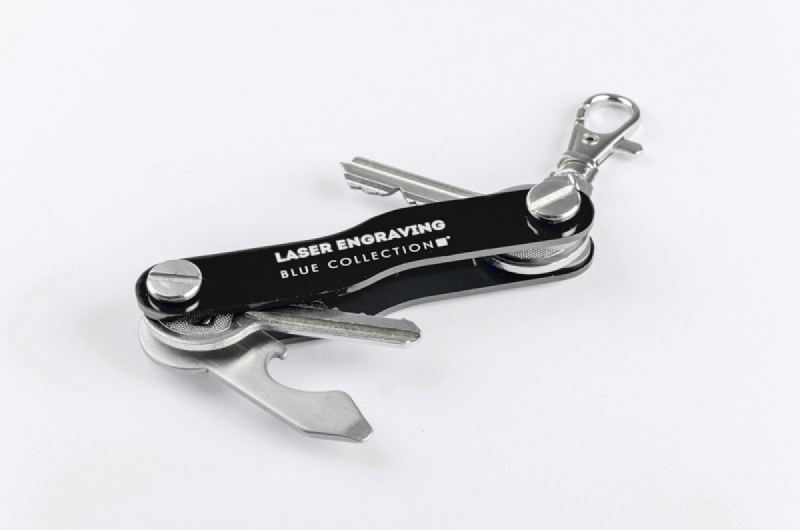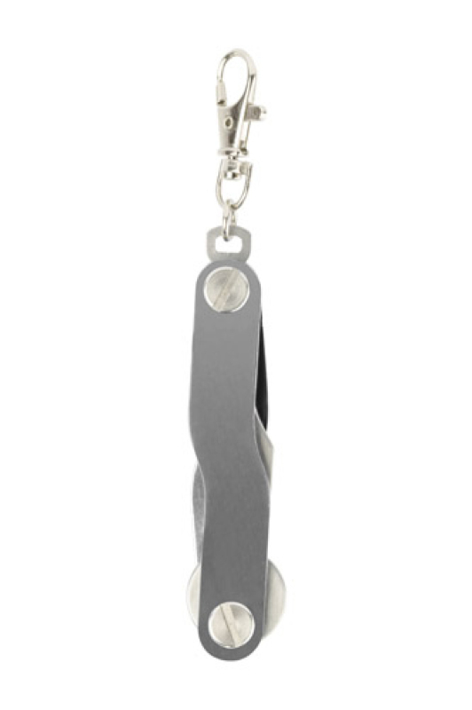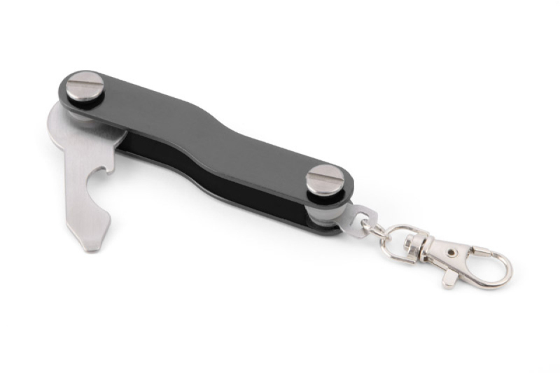 Tento výrobek pomáhá uspořádat a chytře zabalit klíče na rozměr kapesního nože. Jeho ergonomický tvar zlepšuje komfort nošení v kapse nebo také i snižuje riziko poškrábání jiných věcí v dámské kabelce. Karabinka mj. umožňuje připojit větší klíče např. do automobilu. Navíc se v kompletu nachází speciální klíč zvyšující funkčnost organizéru o plochý šroubovák a otvírák na láhve. Hodí se pro většinu typů domácích klíčů vybavených otvorem na vrcholu.