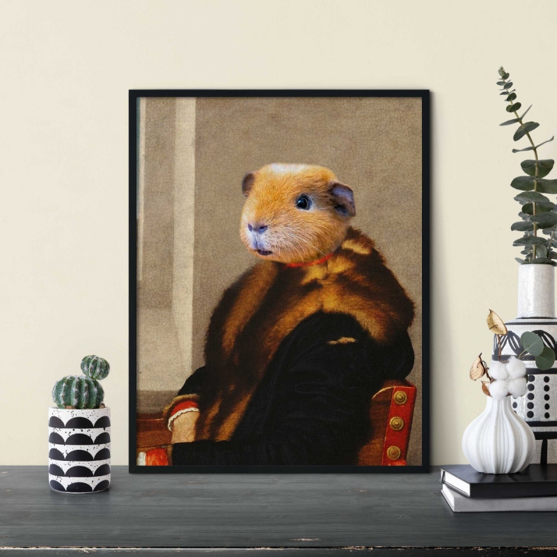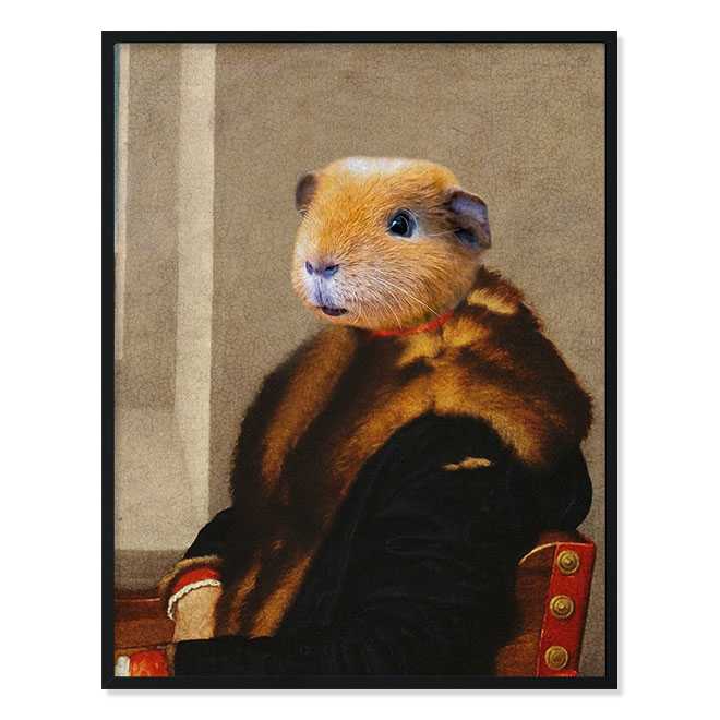 Na portrét je možné vložit jakéhokoli domácího mazlíčka. Například pejska, kočičku, koně, kozu, králíka, papouška, ještěrku, pro dámy dokonce i manžela :) Fantazii se meze nekladou.