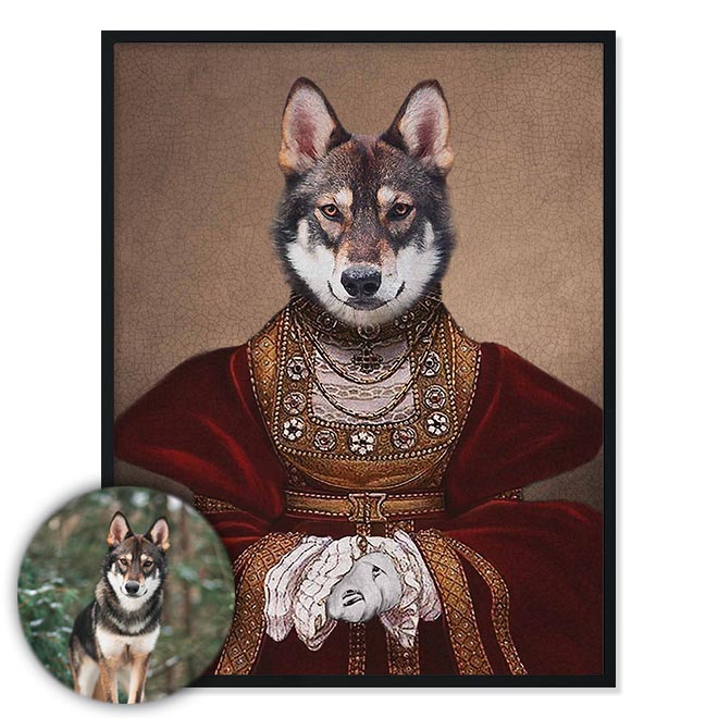 Na portrét je možné vložit jakéhokoli domácího mazlíčka. Například pejska, kočičku, koně, kozu, králíka, papouška, ještěrku, pro dámy dokonce i manžela :) Fantazii se meze nekladou.