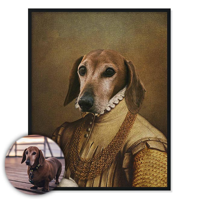 Na portrét je možné vložit jakéhokoli domácího mazlíčka. Například pejska, kočičku, koně, kozu, králíka, papouška, ještěrku, pro dámy dokonce i manžela :) Fantazii se meze nekladou.