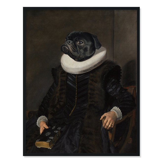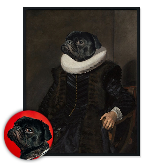 Na portrét je možné vložit jakéhokoli domácího mazlíčka. Například pejska, kočičku, koně, kozu, králíka, papouška, ještěrku, pro dámy dokonce i manžela :) Fantazii se meze nekladou.