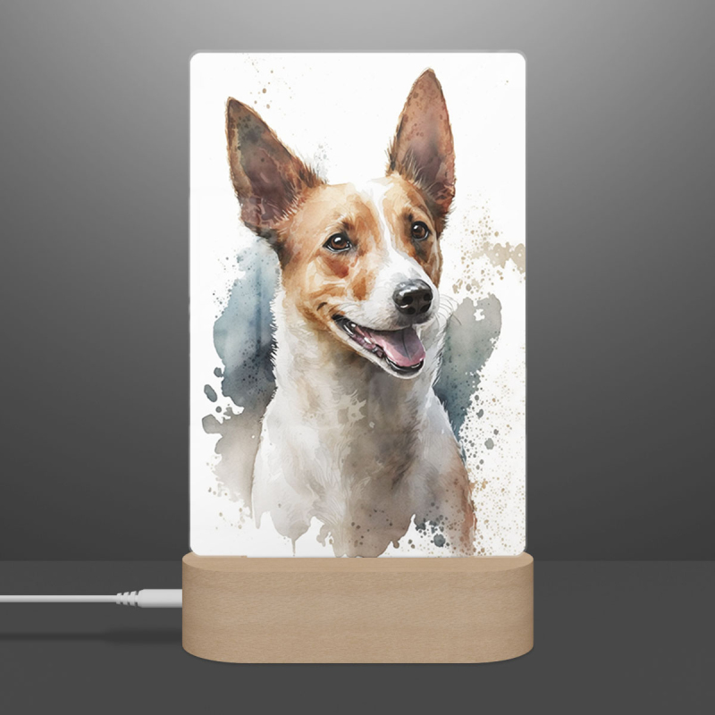 Součástí balení je akrylové sklo dle výběru, dřevěný RGB LED stojánek a napájecí USB kabel.