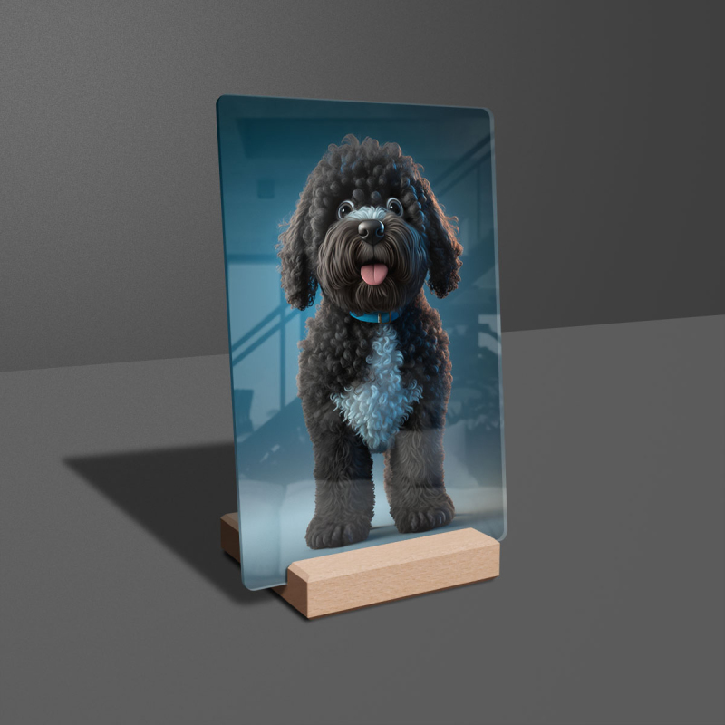Dárková deska s digitální grafikou psa z akrylového skla.