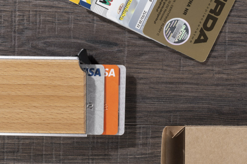 RENE je praktický přístroj, který umožňuje bezpečné uložení kreditních karet. Díky funkci RFID zabraňuje krádeži dat z platebních karet. Pouzdro je vyrobeno z hliníku s přídavkem dřeva. Jedná se o minimalistickou kombinaci, velmi estetickou a elegantní. Do pouzdra se vejde 6 karet. Baleno v hnědé kartonové krabici.