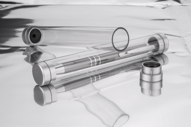 Pouzdro na jeden písací nástroj z plastové trubky. Vhodné pro pera s výškou od 130 do 143 mm.