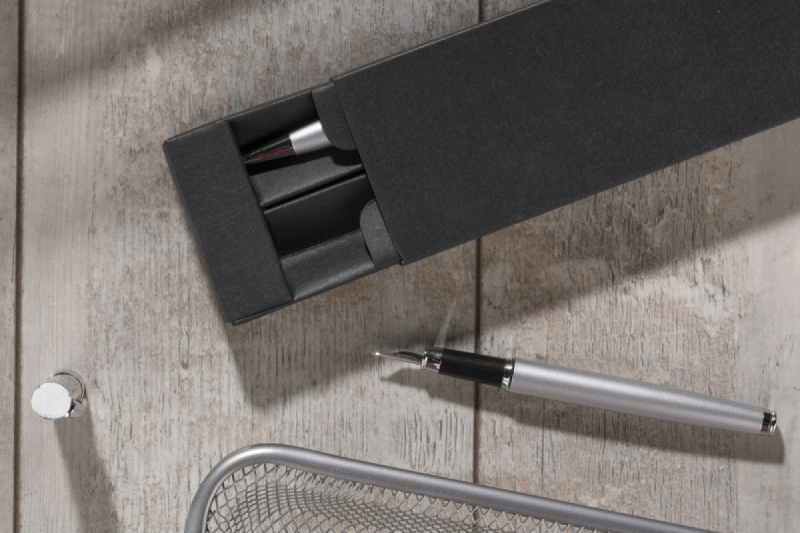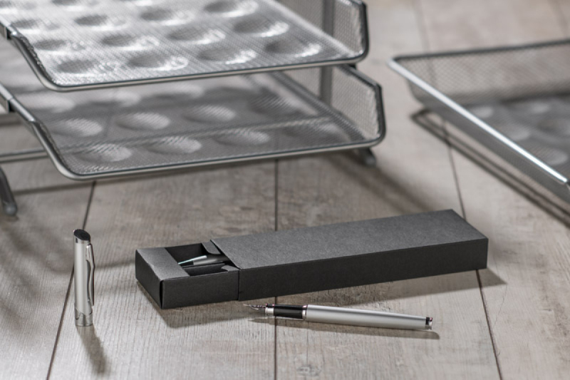 Elegantní černá kartonová krabice na dva psané články. Vhodné pro pera s výškou až 143 mm a průměrem až 12 mm.