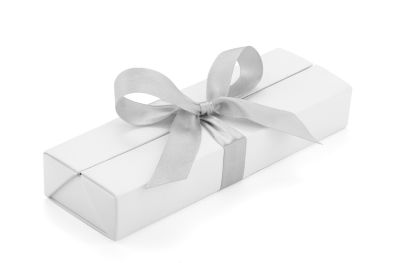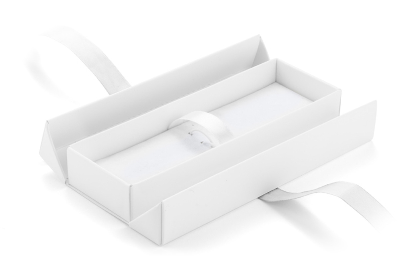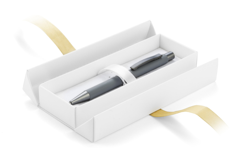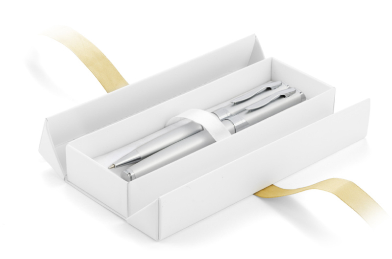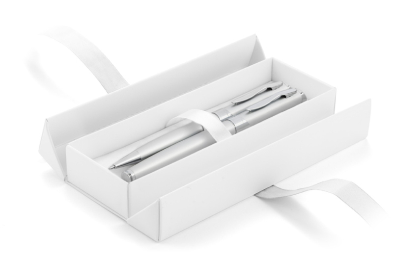 Držák na písacie nástroje, vyrobený z papiera. Upevnený stužkou, ktorá sa dá zviazať do dekoratívneho stužkového uzla.