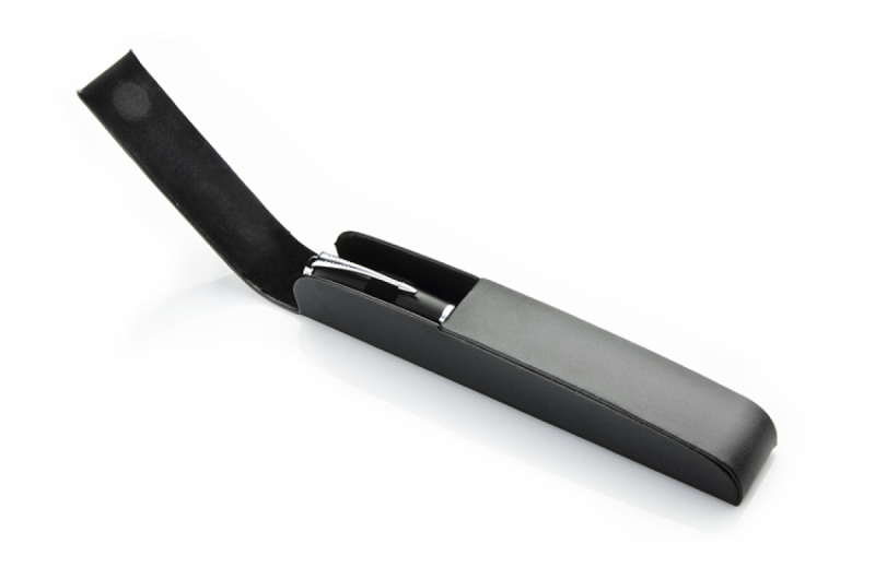 Pouzdro na pero s víčkem z PU s magnetickým uzavřením. Obsahuje širokou kovovou desku vyrobenou z broušeného hliníku, na kterou lze vyryt atraktivní logo. Vhodné pro pera s výškou od 122 do 148 mm.